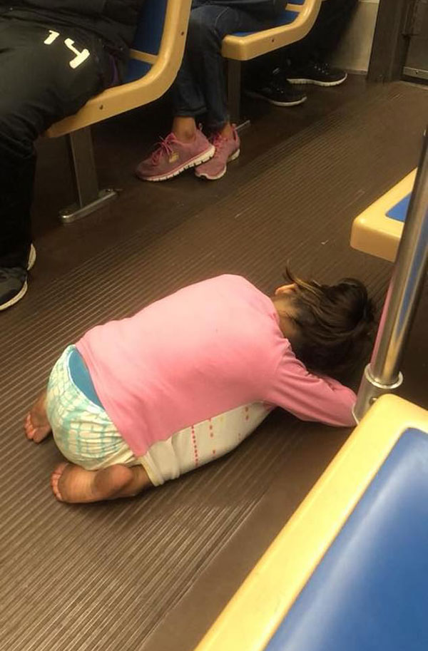 这是一段在芝加哥通勤列车上拍摄的视频。在这段视频中,一个衣着单薄的小女孩脸朝下跪趴在地板上,光着脚丫。阿吉拉尔告诉《芝加哥论坛报》记者:“当我看到一个赤脚的女孩趴在(火车上)通道的地板上睡觉时,我的心都碎了。”她说,这个孩子的年龄在7到13岁之间,看起来好像没有洗过澡,脏兮兮的。乘客试图与这家的大人交谈,但他们不会说英语,西班牙语也不流利。这家的大人表示,由于最近的驱逐事件越来越多,他们离开了原来的住所。这段视频在社交媒体上疯传后,阿吉拉尔和其他几个好心人试图在经济上帮助这家人。