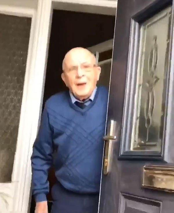 视频记录了詹妮弗的祖父罗伯特在前门与她打招呼的情景。当时他正在位于沿海城镇梅希尔(Methil)的家中吃晚饭。罗伯特(Robert)笑容满面地打开门,张开的双臂迎接她,并用俏皮话打趣她。詹妮弗写道:“我亲爱的爷爷87岁了,他是我的最爱的长辈。我喜欢在我去拜访他的时候拍下他的反应。我希望每个人都能像我一样欣赏这段视频。”