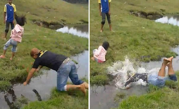 【环球网综合报道】据英国《每日邮报》12月18日报道,在一则拍自印度尼西亚西爪哇省的视频中,35岁的男子拉贾•普拉布(Raja Prabu)与孩子们在山脚下的小溪边玩耍时,不小心掉了进去,惹得孩子们哄堂大笑,忍俊不禁。
