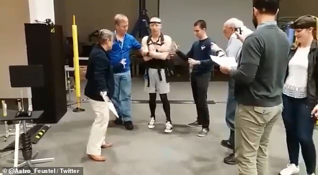 据悉,这位宇航员名叫阿杰德鲁•福伊斯特尔,现年53岁,刚在国际空间站度过了197天的旅程,绕地球3152圈,行程长达8330万英里(约合1.34亿千米)。在视频中,他穿着背带,在多人陪同下走路。他双手交叉放在胸前,小心翼翼地迈步,前三步比较平稳,但接着便完全偏向右边,旁边一位女士马上喊停。福伊斯特尔总共走了10余步。