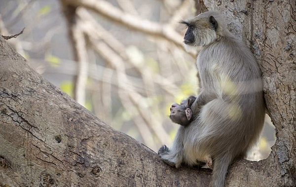 【环球网综合报道】据英国《每日邮报》12月27日报道,近日,在印度拉贾斯坦邦龙腾堡国家公园拍摄的一段感人的视频中,一只母叶猴怀里抱着奄奄一息的婴猴,不断抚摸着它的后背。直到婴猴死去,母猴面露悲伤绝望的表情望着远方,最终迟缓地抱着婴猴消失在丛林中。