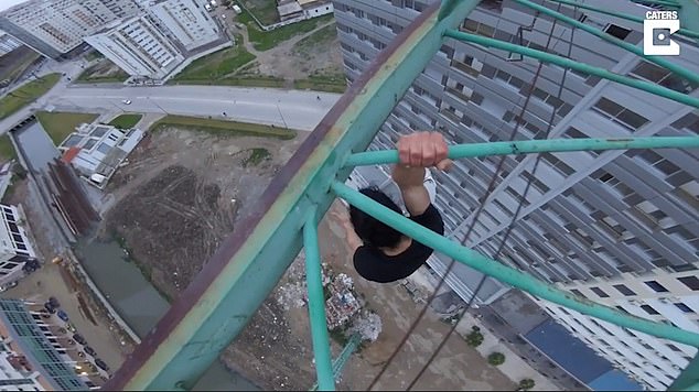 视频显示,哈立德在塔吊的吊臂上完成了一组危险的特技表演。首先,他双腿勾住横杆,双手摊开放在身下,悬空倒挂在吊臂上,仅仅用手抓住横杆防止自己掉下去。为了完成这个特技,他用户外运动摄像机拍摄了自己的倒立图像。目前尚不清楚哈立德拍摄这一特技时的高度,但令人眩晕的视频显示了他离死亡有多近。