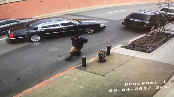 【环球网综合报道】据英国《每日邮报》3月14日报道,一段拍摄于美国纽约布朗克斯区的视频显示,一名嫌疑犯从纽约警察的巡逻车上摔下来,而后试图逃跑。然而在逃跑途中,由于裤子掉落,他摔倒在地上而再次被捕。这个搞笑的瞬间被布鲁克纳大道的监控摄像头记录下来,相关视频被发布在网上,引发不少网友围观。