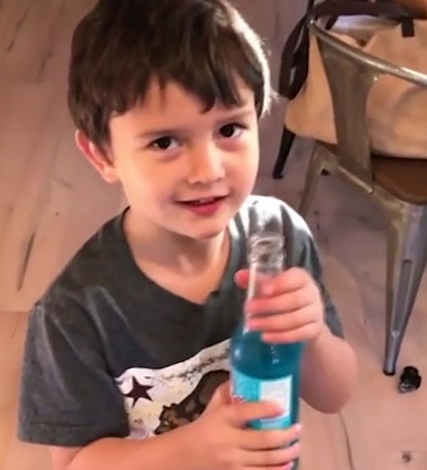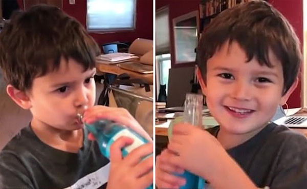 据悉,这对父子来自美国华盛顿州。在视频中,父亲拿起一瓶蓝色甜味汽水让儿子品尝。他说:“我知道你还没喝过汽水。”小男孩则发问:“这里面有糖吗?”确定得到父亲的允许之后,小男孩才开始喝下第一口汽水,而只这一口便让小男孩瞬间爱上了汽水的味道。他开心地说道:“天哪!我想把它喝完!”每喝一口,小男孩就越发兴奋,并向父亲表示他不会把这件事告诉妈妈。父亲看见儿子的可爱模样,也大笑了起来。从儿子手中拿回汽水后,父亲发现瓶身标签注明每瓶这样的汽水都含有48 克 的糖分,几乎为英国每日糖分摄入量标准的两倍。