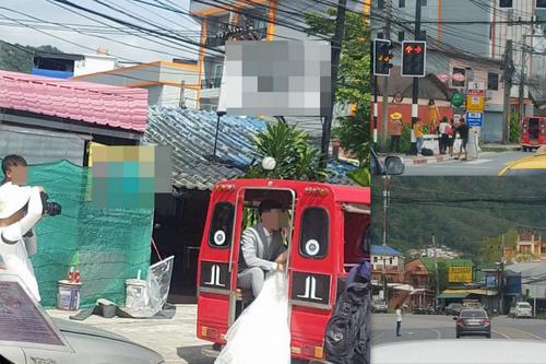 据悉,当时这对夫妻普吉府甲涂县卡玛拉镇区道路上拍婚纱照,因无视交规,造成了交通瘫痪等负面影响,给道路使用者造成不便。
