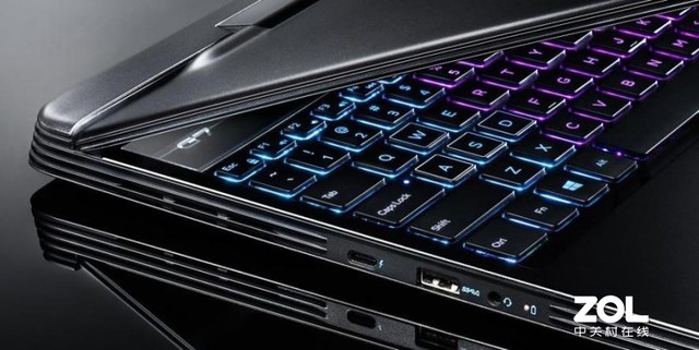 戴尔G7采用了超跑四边格栅设计,将强劲能量凝聚于层层叠叠的结构中,出风口设计在机身尾部与左右两侧,通过格栅设计使其与中部融为一体。