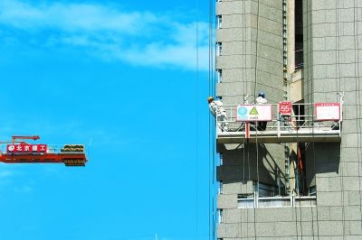 昨天,在北京城市副中心行政办公区市政府办公楼工程现场,北京建工集团的工人们在蓝天下抓紧施工。经过一年多的努力,市政府办公楼工程建设已进入冲刺阶段。