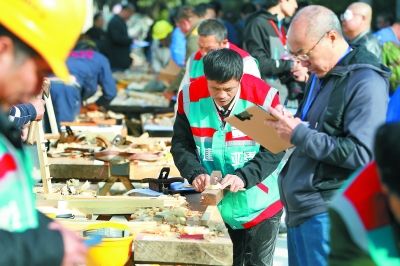 今天上午,故宫博物院为养心殿修缮工程招揽贤才,43名木作工人现场比试露“真招”。本报记者 甘南 摄 J216