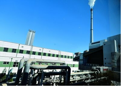 1月6日,从国贸三期顶层鸟瞰北京,可见长安街上的大烟囱冒着浓浓白烟。昨日,随着国华北京热电厂燃煤机组全部关停,大烟囱也从此退役。 新京报记者 李冬 摄