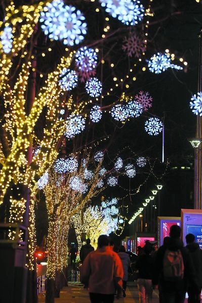 三里屯街头火树银花,好不热闹。本报记者程功摄J129