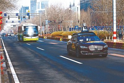 自动驾驶车辆在北京经济技术开发区荣华中路上进行测试