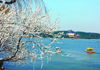 昨天,颐和园西堤山桃花盛开,昆明湖上小舟荡漾,天空中风筝翱翔,如画美景吸引众多游客前来踏春赏花。本报记者 吴镝摄