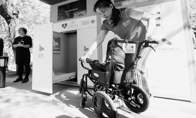 居民在智能急救站通过扫描身份证快速借到轮椅。本报记者 张立朝/摄 |