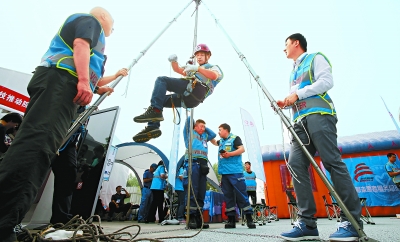 图为市民体验高空索降救援。