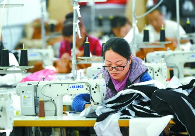 工人在沧州服饰特色小镇新厂房紧张工作。张昊摄