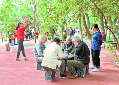 东城区体育馆路街道在幸福东街南口,利用荒地建设了一处平房区口袋公园。今天上午,这个2000平方米的口袋公园投入使用,附近居民在家门口赏花看绿、健身娱乐、邻里聊天,其乐融融。本报记者 胡铁湘 摄