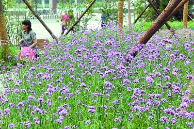 石景山区苹果园平坡草树公园内的柳叶马鞭草进入盛花期。这处口袋公园种植了白皮松、油松、银杏、紫丁香、太平花等各类植物,成为周边居民消夏纳凉的好地方。本报记者 吴镝摄