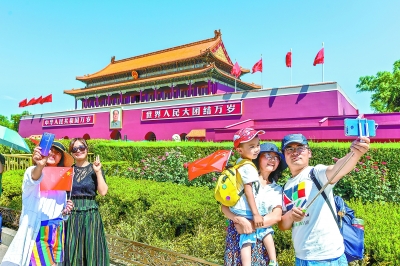 昨天是中 国 共 产 党 成 立 98周年,京城天气晴朗碧空如洗,整修一新的天安门城楼在晴空下焕发光彩,不少市民游客纷纷来到城楼前拍照,在特别的日子里留下纪念。 本报记者 邓伟摄