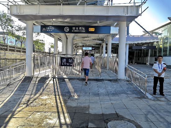 经过两个多月的施工改造,在回龙观站东西出入口建成了总面积为582平方米的安检厅,内设6台安检机,回龙观车站进站乘客可以从车站的东西两侧经过限流区域,进入安检厅,经过安检后,由站厅进站候车。