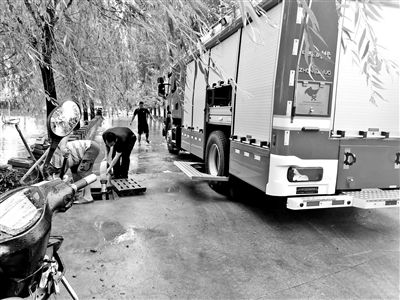 怀柔杨宋镇工作人员全力排查、清理路面积水 供图/怀柔区杨宋镇