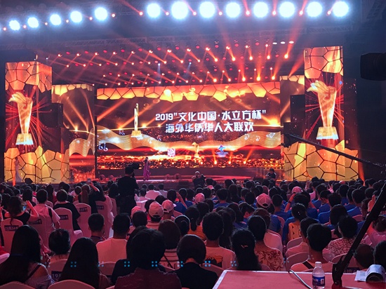 人民网北京8月9日电 8月8日晚,2019年“水立方杯” 海外华侨华人大联欢活动在国家游泳,“水立方”举行。