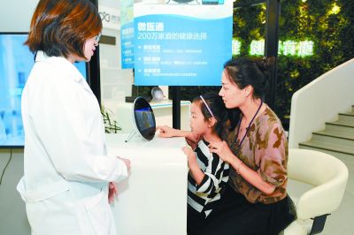 10月19日,参观者在乌镇互联网医院体验使用“微医通”与医生进行远程连线。新华社发