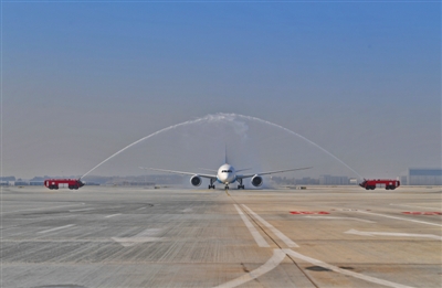 “水门”迎各航司,落地航班
