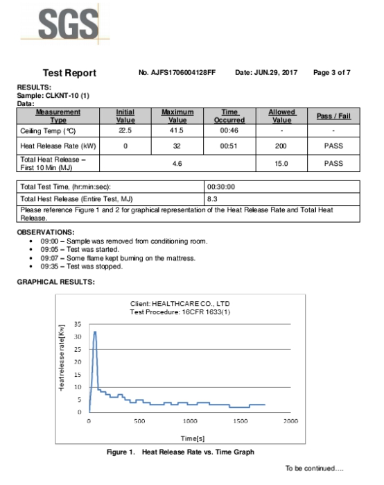 图:Mlily梦百合通过SGS的阻燃测试