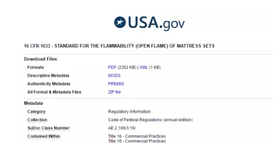 图:源自美国联邦政府官网最新的床垫阻燃标准