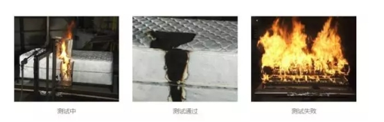 在日常生活中更常见的明火,检测过程则是将床垫暴露在明火之下燃烧。让床垫的侧面接受燃烧50秒,而床垫上面部分要持续燃烧70秒后才将火源移开。在火源离开后的30分钟内,床垫的火焰必须要逐渐自行熄灭。