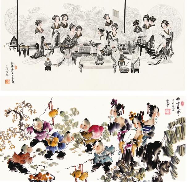 梁永和的仕女人物既不同于唐代的丰腴肥硕之美,也不同于明清仕女的纤巧瘦弱之美,他们是一个个活生生的人,可交谈可亲近,一改过去仕女画只有形态而没有表情的窘态。
