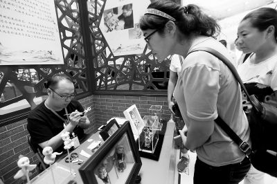 昨天,市民在新东安市场观看入选天津市非物质文化遗产名录的津派面塑技艺展示。当日,为期三天的2017京津冀非遗走进王府井活动开幕。京津冀三地的30余项最具地方特色和代表性的非遗项目集中亮相,展示非物质文化遗产的独特魅力。 本报记者 孙戉摄