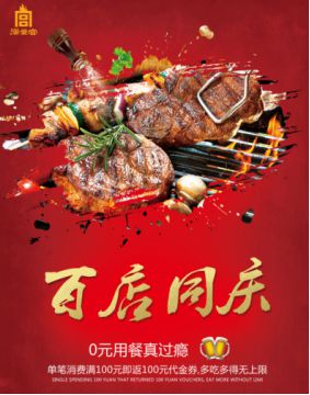 汉釜宫品牌百店同庆活动届时将于2017 年 12 月 18 日-2017 年 12 月 22 日举行活动,共计时 5 天。全国各地汉釜宫品牌合作店在此期间都会参与此活动,我们热烈欢迎新老顾客的光临。我们公司实施跨年活动,一是为了迎合节日氛围,二则是通过活动吸引更多的顾客,从而达到品牌名气的迅速传播。在活动期间,带着满满的诚意和魄力我们特此推出以下的优惠活动:一、0元用餐(百店同庆期间到店消费满100赠百元代金券,下次消费满200元可用)二、1元带您品尝潮汕特色炸腐皮,百店同庆期间炸腐皮1元/份销售。