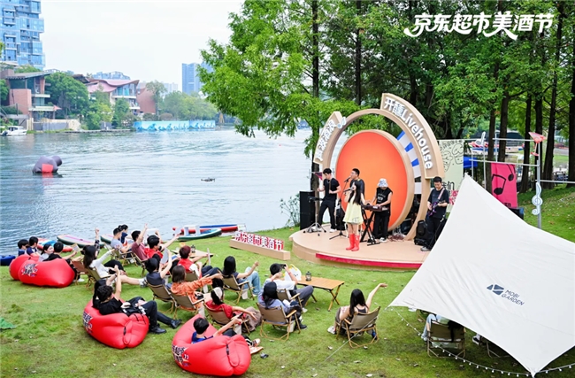 这次京东超市美酒节体验式集市,不仅凭借麓湖的自然风光与创新水上场景,成为成都城市级打卡新,,更通过名酒特调、潮流打卡、音乐派对等多元形式,将京东超市美酒节“名酒齐全保真”的心智,从线上的文字承诺转化为线下可触摸、可品尝、可分享的鲜活体验。