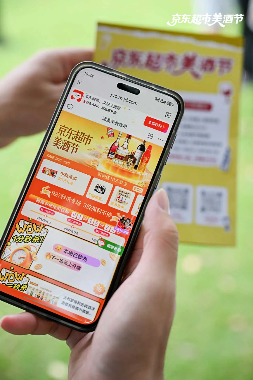 活动当天,京东超市设置了三场“1分钱秒杀”活动。用户只需打开京东APP搜索“美酒节”,即可参与1分钱抢好酒。每到秒杀时间,现场便有众多用户参与。不少人在秒杀成功后,还在京东APP下单了更多酒水。“线上京东酒水齐全又保真,中秋买酒不用跑,直接送货上门!这种好事能不能多来点!”这种“线下体验+线上转化”的模式,让很多人觉得既好玩又实惠。