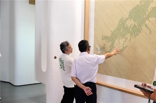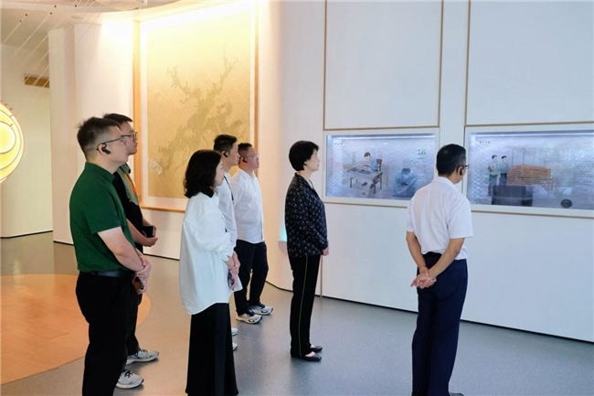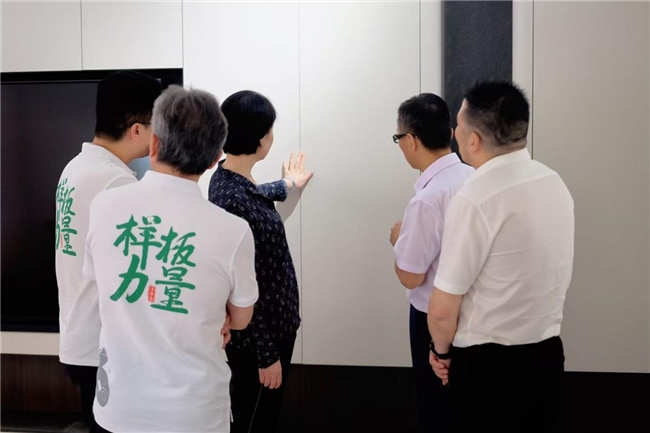 访问首站,铭品装饰团队在千年舟集团董事长陆铜华、千年舟集团执行总经理田茂华、千年舟集团副总经理陆功田及柏菲伦核心管理层的陪同下,共同参观了千年舟集团文化展厅(木本馆)。