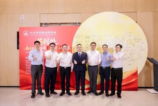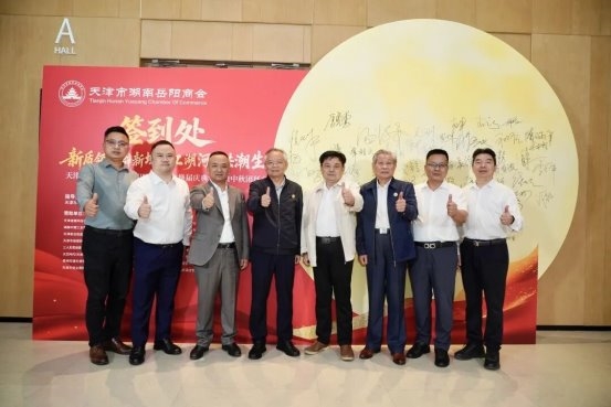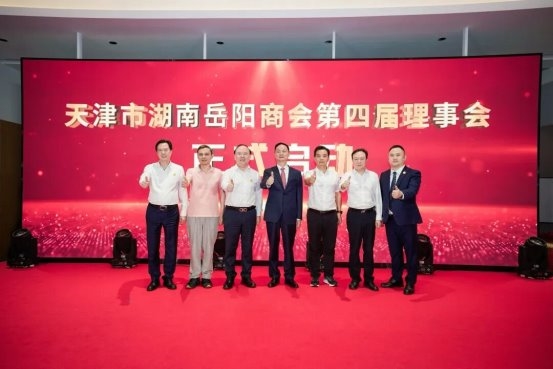 岳阳市人大常委会副主任王文华、湖南省政府驻京办区域协作工作处处长易伟、岳阳市委统战部副部长方卫兵、岳阳市商务局局长陈立新、天津市湖南商会会长、天津市人大常委、天津市工商联副主席赵国锋、天津市湖南商会执行会长张文武、天津市湖南岳阳商会会长魏红军七位领导共同启动,标志着天津市湖南岳阳商会正式迈入新发展阶段。仪式后,全体与会人员合影留念,为第一篇章画上圆满句号。