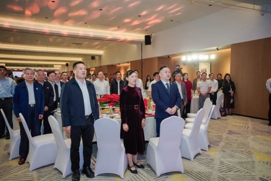 商会班子成员走上舞台,商会执行会长兼秘书长杨超代表班子成员致祝酒辞。话音落时,全场举杯,璀璨灯光交织出温馨氛围,满是团圆与奋进的暖意。