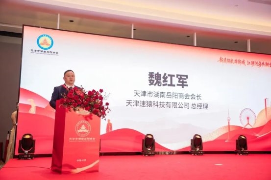 天津速猿科技有限公司总经理、天津市湖南岳阳商会会长魏红军登台致欢迎词,言语间满含感恩之情与奋进决心:他先是向远道而来的家乡领导、异地嘉宾,悉心指导的湖南省商会,奠定商会根基的前辈,以及风雨同行的会员理事表达四重谢意,坦言商会发展离不开各方同心聚力;随后明确新一届理事会将以 “以企治商,以商兴企” 为准则,坚守 “相知互助同兴” 初心,持续筑牢津岳政企沟通桥梁,干实事、求实效,为会员谋发展、为家乡谋共赢,以“求索创新”的锐度、“敢为破局”的勇气、“实干笃行”的韧劲、“忧乐共担”的情怀、“江湖同兴”的格局,共同打造新“岳商精神”。