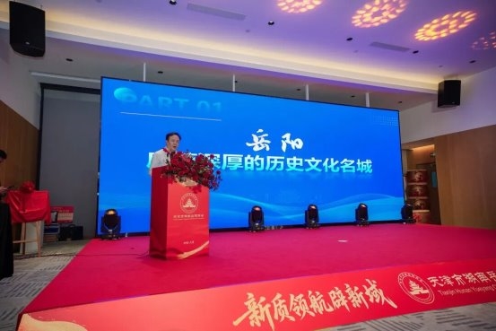在政府招商推介环节,岳阳市商务局局长陈立新围绕岳阳 “江湖名城” 的区位优势、产业基础、营商环境及,招商项目,深度解读“湘商回归”的投资机遇,诚挚邀请在津岳商回乡投资,共享家乡发展红利。进一步搭建起津岳两地资源对接、产业合作的新桥梁。