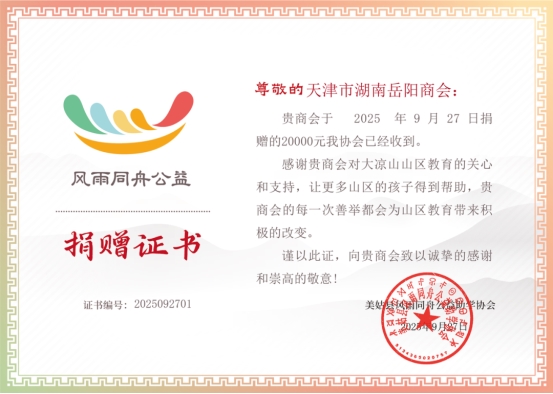 更令人动容的是,商会还向风雨同舟公益组织捐赠 2 万元现金,助力改善山区教育条件。会长魏红军与公益组织负责人杨丽菲完成交接,这笔善款不仅是物质支持,更彰显岳商群体心系公益、温暖社会的深厚情怀。