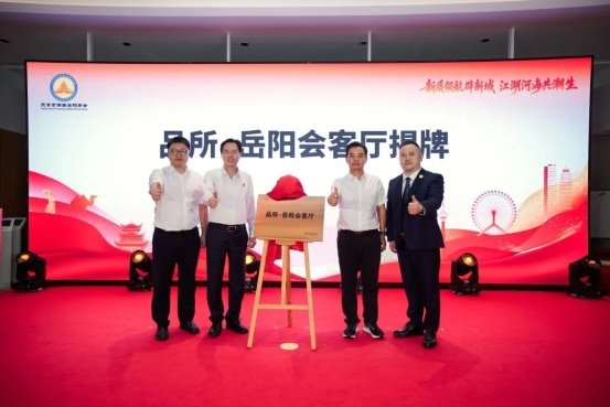 除了公益善举,商会还积极为在津湘友建立情感联结的桥梁与资源共享的阵地,“品所・岳阳会客厅” 应运而生。岳阳市委统战部副部长方卫兵、天津市湖南商会执行会长张文武、商会会长魏红军、品所中心项目负责人刘华共同揭牌。这一平台不仅是在津岳阳人的 “温暖家园”,更是津岳经济文化交流的 “新窗口”。随后,天津品所中心总经理吕勇嘉详细介绍会客厅功能特色,让现场嘉宾对这一创新载体充满期待。