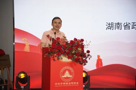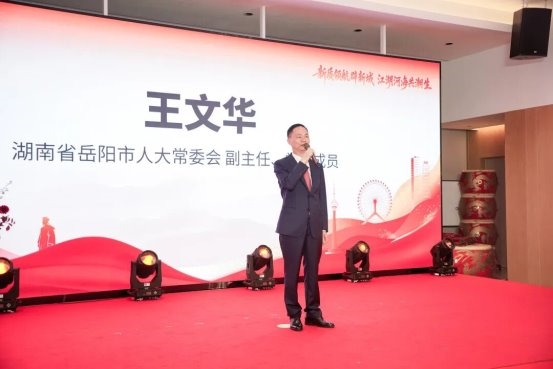 岳阳市人大常委会副主任、党组成员王文华 ,向庆典的召开和在天津创业打拼的各位乡友致以问候,向关心支持家乡经济社会发展的社会各界表示感谢。他指出,“岳商担当作为,是家乡人民的骄傲和荣耀”,在津岳商怀揣梦想、奋力打拼,秉承湖湘儿女“吃得苦、耐得烦、霸得蛮”的特质,展现出岳阳人的坚韧与奋进,凭过硬实力取得亮眼成就,成长为各行业中坚与社会精英;“岳阳风景正好,有日新月异的发展和变化。”如今的岳阳,发展势头强劲,城市活力迸发,焕发蓬勃生机。可谓是风景这边正好、好戏正在上演、未来发展可期;“家乡未来可期,需商会乡友的给力和参与。”希望天津岳阳商会持续发挥桥梁纽带作用,凝聚乡友力量、优化服务,建好岳商“温暖之家”“合作之桥”“发展之翼”;同时当好津岳交流使者,讲好岳阳故事、展示岳阳形象,引导乡友做好家乡“智囊团”“慈善家”“宣传员”“投资者”,为打造中国式现代化“7 个岳阳”贡献更大力量。