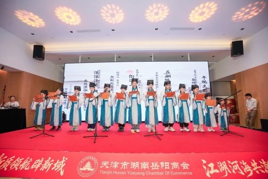 歌声里满是乡情:第三届天津市湖南岳阳商会秘书长沈真巨登台演唱歌曲《我需要你》,深情的旋律与真挚的歌词,道出了商会 “需要每一位会员参与、需要每一位领导支持” 的心声;天津市音乐家协会会员赵晓颖演唱《幸福中国一起走》,寄托着对国家发展、商会进步的美好祝愿;北京音乐家协会孟然演唱《在此刻》,用 “我挺身在此刻” 的激昂唱腔,将并肩前行的信念融入旋律;商会副会长张渐登台演唱《精忠报国》,豪迈的歌声中满是家国情怀;来自岳阳汨罗的天津音乐学院新生游阿凿,以清澈的嗓音演唱歌曲《如愿》,让在场乡贤倍感动容。