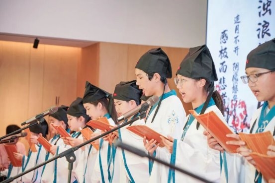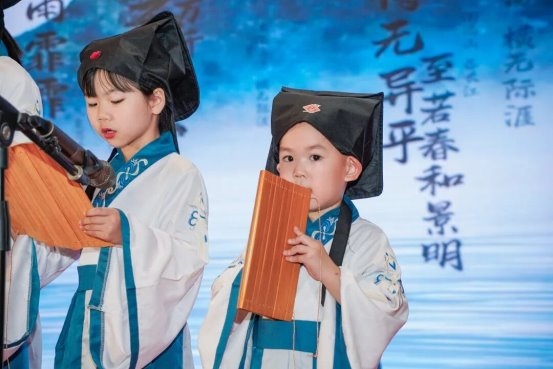 晚会亮点满满。来自汨罗的楚锦新与来自岳阳各地的可爱小朋友们共同登台,带来诗朗诵《离骚》《岳阳楼记》。楚锦新以深情的语调演绎《离骚》,“路漫漫其修远兮,吾将上下而求索” 的名句引发全场共鸣;小朋友们则以稚嫩却坚定的声音朗诵《岳阳楼记》,“先天下之忧而忧,后天下之乐而乐” 的忧乐情怀感染着每一位嘉宾,字句间满是岳阳文化的传承力量。