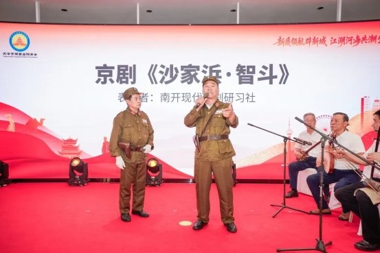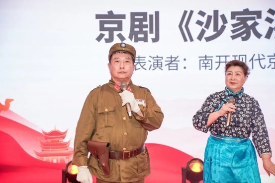 南开现代京剧研习社的老艺术家们带来经典京剧选段《沙家浜・智斗》。平均年龄近七十岁的表演者们精神矍铄,字正腔圆的唱腔、生动传神的身段,将京剧的韵味与魅力展现得,。表演结束后,应嘉宾们的热烈要求,研习社路慧湘老师(京津冀京评梆戏剧大赛一等奖得主)再加演一段《空城计》选段,婉转唱腔赢得满堂喝彩,掌声与叫好声此起彼伏。