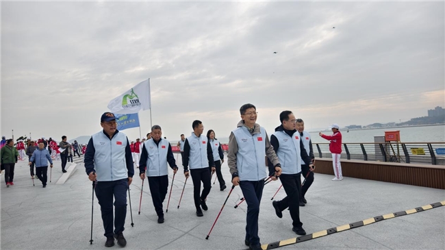 2025年11月8日,恰逢第十五届全运会同期举办,2025年“双11”全国持杖行走联动日(主会场)活动在威海至海港湾广场隆重开幕。本次活动由国家体育总局登山运动管理中心、中国登山协会、山东省体育总会联合主办,威海市体育局、威海市体育总会、威海市环翠区人民政府承办,以“健身双十一,燃情全运会,携手奔赴全民健身新征程”为核心,线上线下同步联动,掀起全民健身热潮。