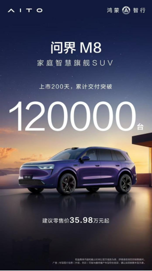 而问界 M8 的出现,彻底改变了这一局面。作为定位 “家庭智慧旗舰 SUV” 的车型,它上市 200 天累计交付便突破 12 万辆,用亮眼的销量数据成为 40 万级市场的核心力量。同时,它还凭借出色的安全性能与综合表现,斩获 C-STAA 认证,成为行业首款获此认证的全尺寸 SUV,进一步强化了其市场标杆地位。