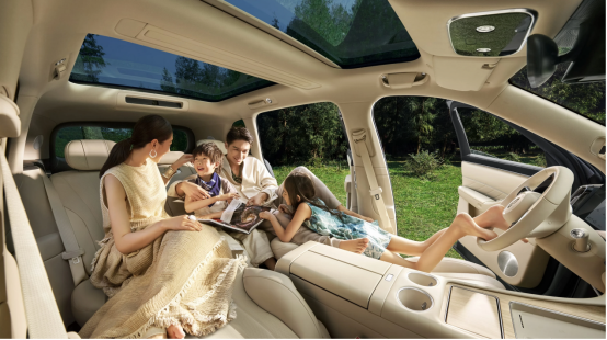 空间设计上,问界 M8 尽显家庭友好属性。近 5.2 米的车长、3.1 米的轴距,再加上 67.6% 的高得房率,为全家出行提供了宽敞舒适的乘坐空间。全平地板设计搭配三排六座、双排五座两种灵活布局,满足不同家庭的用车需求:六座版二排的零重力座椅、五座版右后的准零重力座椅,以及可一键躺平并与二排右侧座椅无缝衔接的副驾座椅,能秒变 L 型豪华大沙发,支持坐、躺等多种姿态自由切换。储物空间同样出色,后备箱,拓展容积达 2350L,无论是全家行李还是露营装备,都能轻松容纳,真正实现 “一车满足全家出行”。