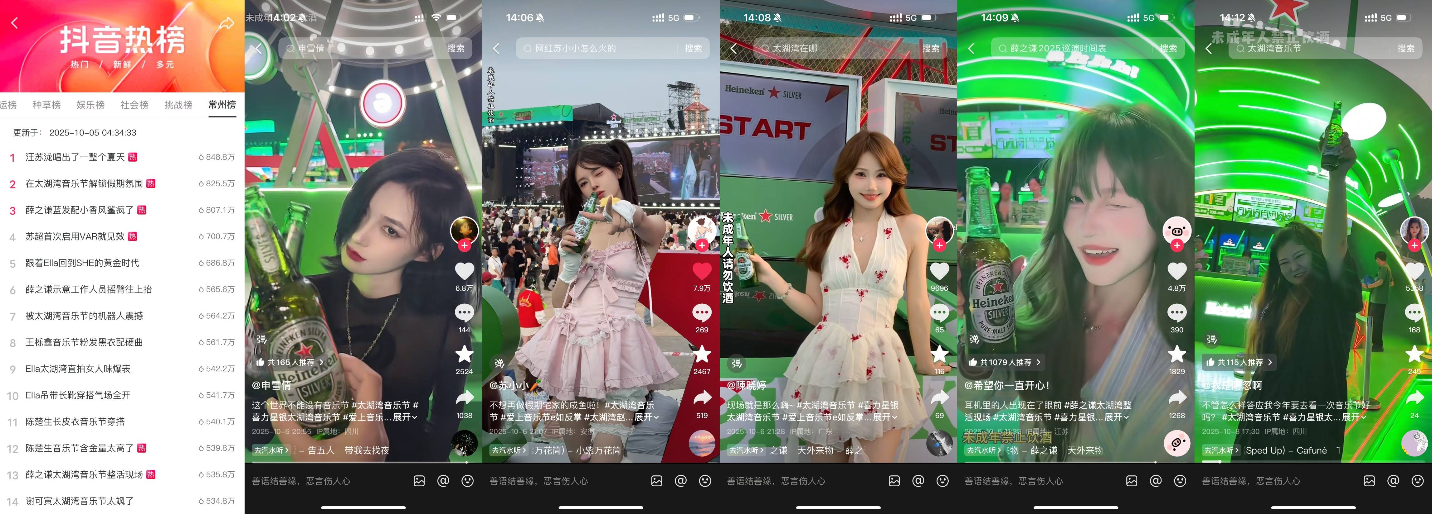 今年秋季,喜力®星银®第十一届常州太湖湾音乐节与喜力®星电音,呈现2025VAC电音节,在与抖音演出的深度联动下,通过热点策划、达人共创与主播直播,成功将音乐现场的热情从舞台延伸至屏幕,实现从城市事件到全网热议的声量爆发。